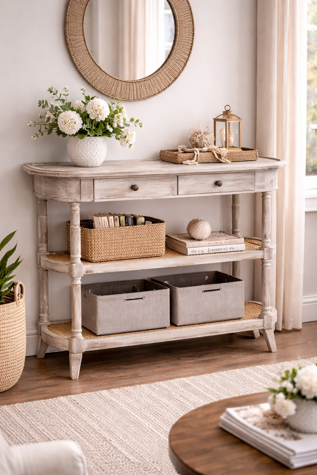 Solid Wood 3-Tier Display Shelf Console